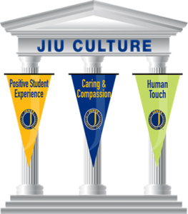 In order to create our JIU Culture of caring and to meet the JIU Gold Standards for teaching, our faculty members go beyond their text books and lecture notes. They reach out to each individual student and engage them in active-learning by building on the student’s past life experiences [constructivism]. Our faculty members are expected to weave the Three Pillars of the JIU Culture into their interactions with students.